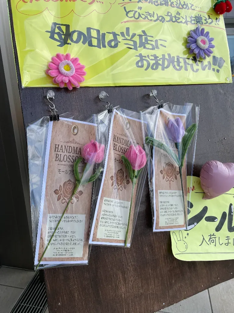 ただいま、ふぁみりぃしょっぷもりフレスポ桜井店のみとはなりますが、モールフラワーを無料で配布中です!